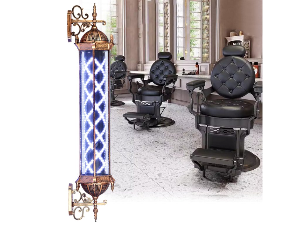 Stropní lampa obsahuje moderní LED osvětlení, které imituje rotaci , ideální pro zvýraznění holičství.