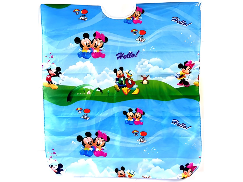 Stylový, moderní design s motivem Mickey Mouse , vyrobený z vysoce kvalitního nylonu, snadno upoutá pozornost dítěte. Snadno se čistí. Plášť se zapíná na přezku u krku .