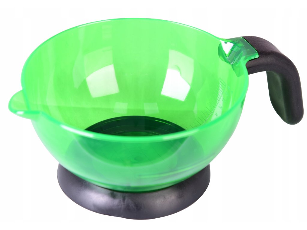 Profesionální míchací mísa je nezbytným nástrojem při barvení nebo zesvětlování vlasů. Tato miska je vybavena rukojetí , která usnadňuje držení v ruce , a bude perfektně fungovat nejen v domácích podmínkách, ale i v kosmetických salonech. Je také praktický pro míchání kosmetických masek , které se aplikují na pokožku obličeje a těla.