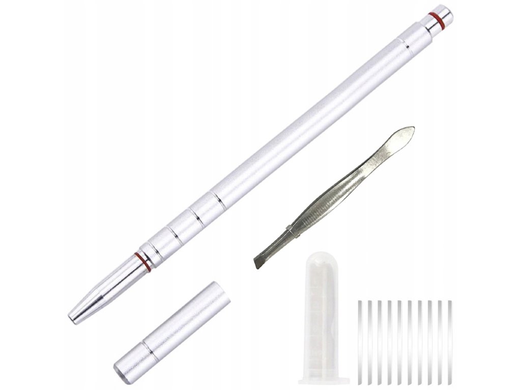 Kadeřnická tužka Razor pro konturování vousů v stříbrné barvě