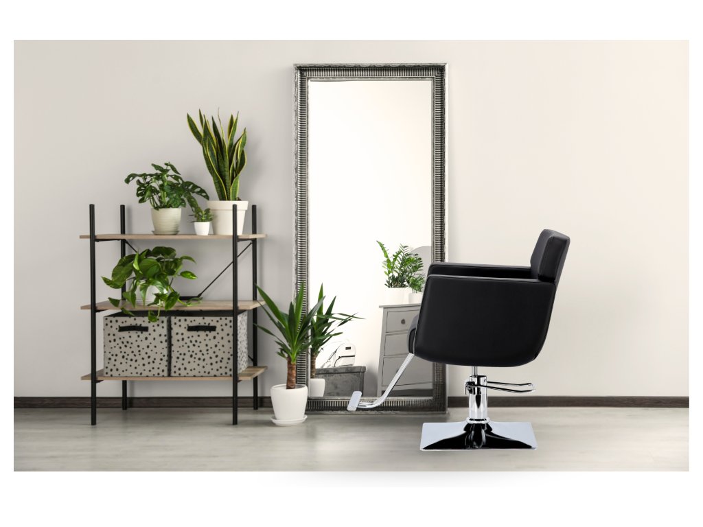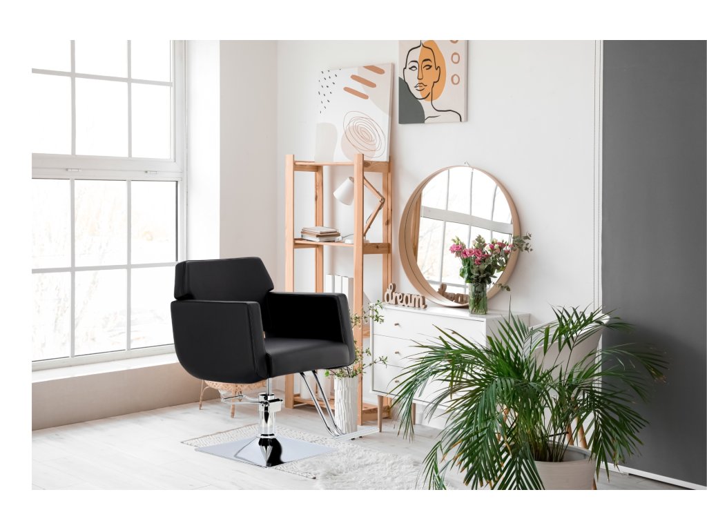 Kadeřnické křeslo Chloe černé s podnožkou