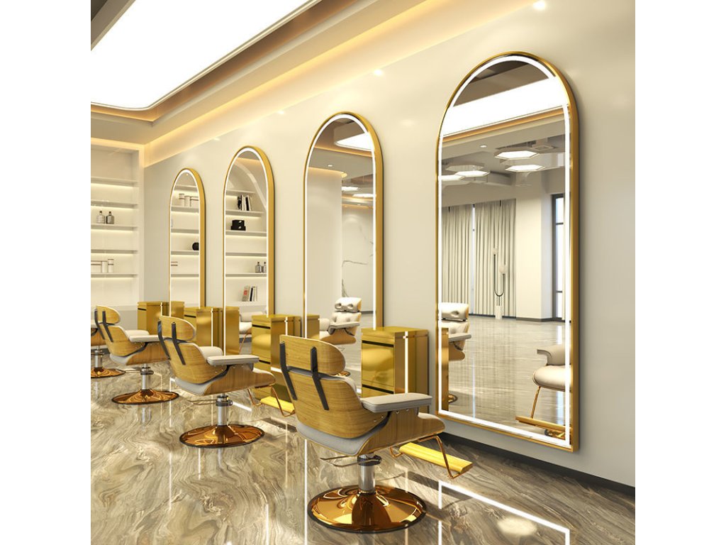 Kadeřnické zrcadlo LED Q8 hliníkový zlatý rám 170x70 STD