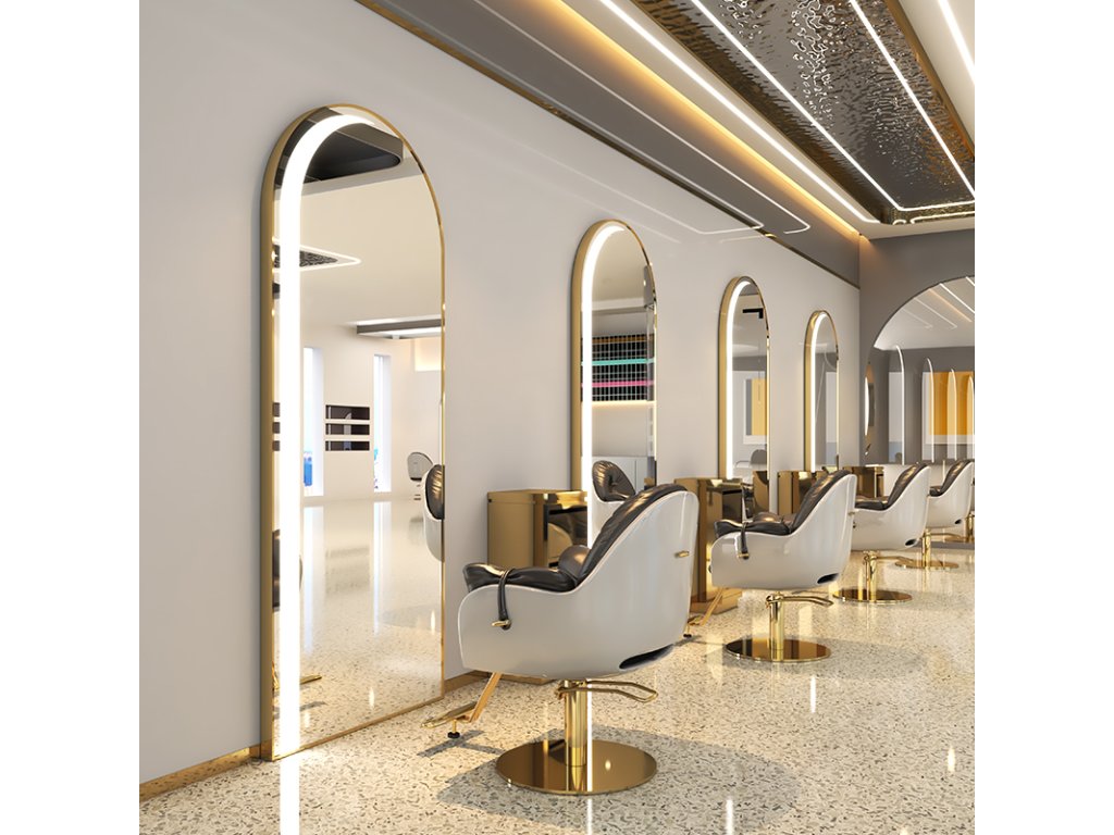 Kadeřnické zrcadlo s LED osvětlením hliníkový zlatý rám 180x80 PRO