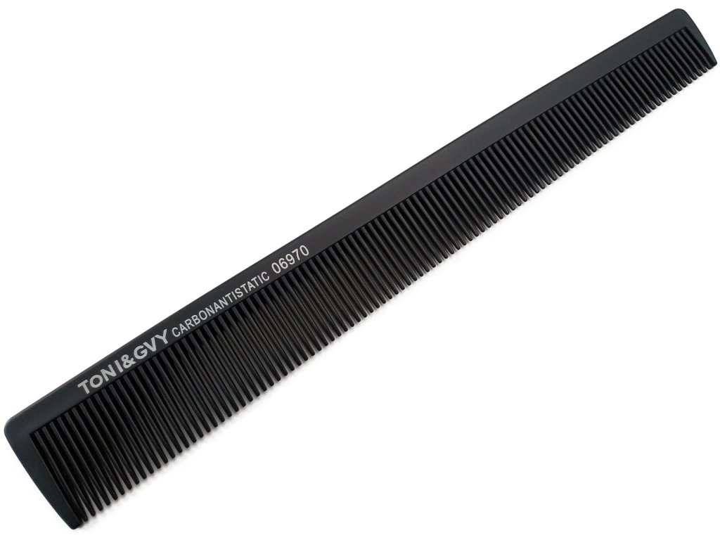 Kadeřnický hřeben rovný na stříhání a česání, antistatický, karbonová černá 06970