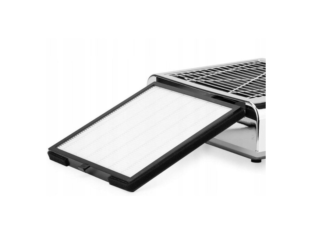 Filtr HEPA (High-Efficiency Particulate Air) ve sběrači prachu na nehty zachytí nejméně 99,97 % částic do velikosti 0,3 mikronu, včetně jemných prachových částic, alergenů a spor. To výrazně zlepšuje kvalitu vzduchu v salonu krásy, minimalizuje riziko alergických reakcí a udržuje čisté pracovní prostředí. HEPA filtr je odolný a snadno se udržuje a zajišťuje dlouhodobou účinnost filtrace. Filtr lze vyčistit.