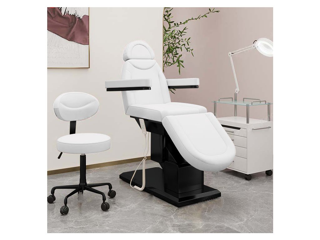 Set elektrické kosmetické křeslo Luxury bílé- černé 3 motory + taburet